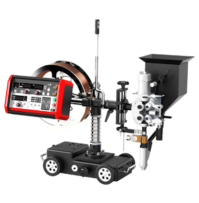 Paired with a dedicated SAW tractor featuring dual-drive DC motor, travel speed of 0.2–1.8 m/min, and support for 3.2–6mm wire diameters with 25kg spools for extended continuous operation.